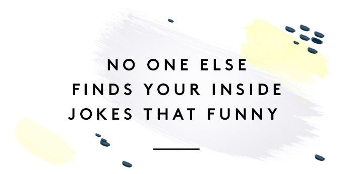 强改变生活的友谊是建立在客场之旅,家过夜,海滩天,女孩之夜,节日和疯狂的事情发生在他们。这些古怪的结合点最终成为里面那个永远生活在开玩笑。唯一的问题是没有人理解他们。这是一个问题,当你在野外出门在外和其他朋友都没有在开玩笑。你很可能会招致异样的眼光,当你在笑的针都在大口喘气了泪水,而你在地板上滚来滚去流。有解释是没有意义的;从来没有好结果。他们几乎总是“你必须是有”笑话无论如何,当他们不明白这一点还是无法找到它一样可笑你们两个你会很失望。