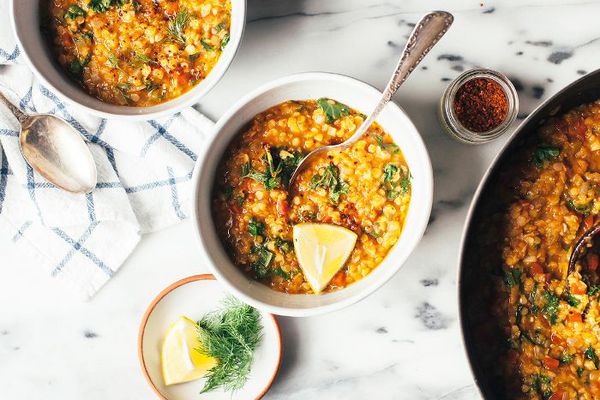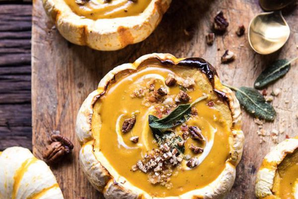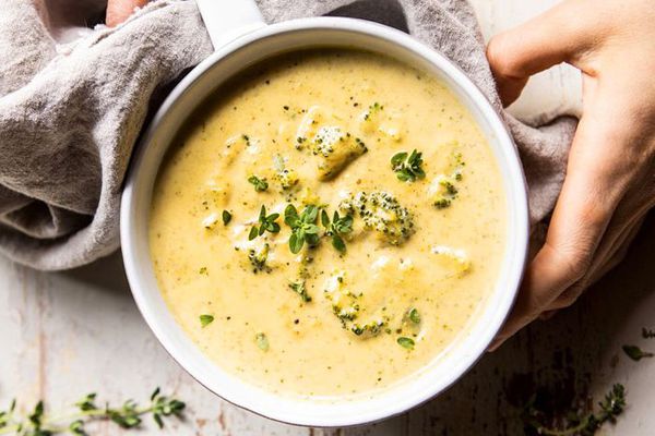 配方:如果想要颓废的一面或清淡的主菜,就来点这个干酪菜花汤..将洋葱、肉汤和花椰菜放入荷兰烤箱中混合,然后将混合物放入搅拌机,加入奶酪。在汤的上面放上自制的面包丁和甘蓝香蒜酱,这道香蒜酱是用甘蓝、欧芹、橄榄油、盐、大蒜和柠檬做成的。