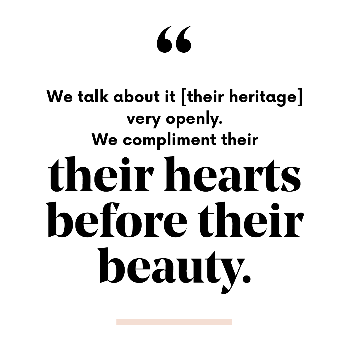 事实上,她认为我们应该教我们的孩子关于种族的最大教训是包容和同情。“所有的比赛都是重要的(美丽),但也有被边缘化并推如下审美标准的比赛,”她感叹。“我爸一直强调我的黑人文化是多么美丽,给我是敏感的,而且在我的美女谁不明白其他文化大胆。它站起来为不具备相同的权限其他种族的人谁是很重要的。”募集的混血儿,阮告诉我,她经历了被包含和排除。“坦率地说,它很烂,”她反驳道。“就因为你是黑并不意味着你是一个罪犯,或者你会迟到的功能。仅仅因为你是小白并不会让你纯净或比其他人更好。仅仅因为你是亚洲人不会使你聪明。它的崩溃,这些柱头和教我们的孩子学习上的情况下,逐案的个人,而不是分组人变成种族分类“。