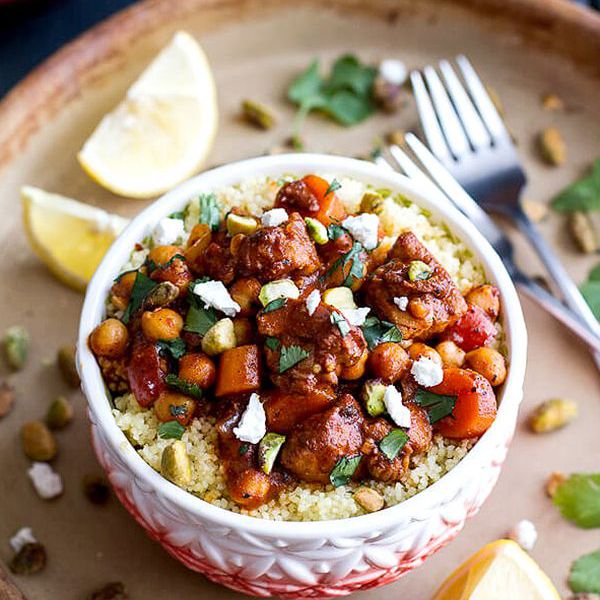 配方:如果你的心情是什么东西安慰和全面的复合调味品,半烤收获的一锅鸡摩洛哥鹰嘴豆和蒸粗麦粉意志击中当场。