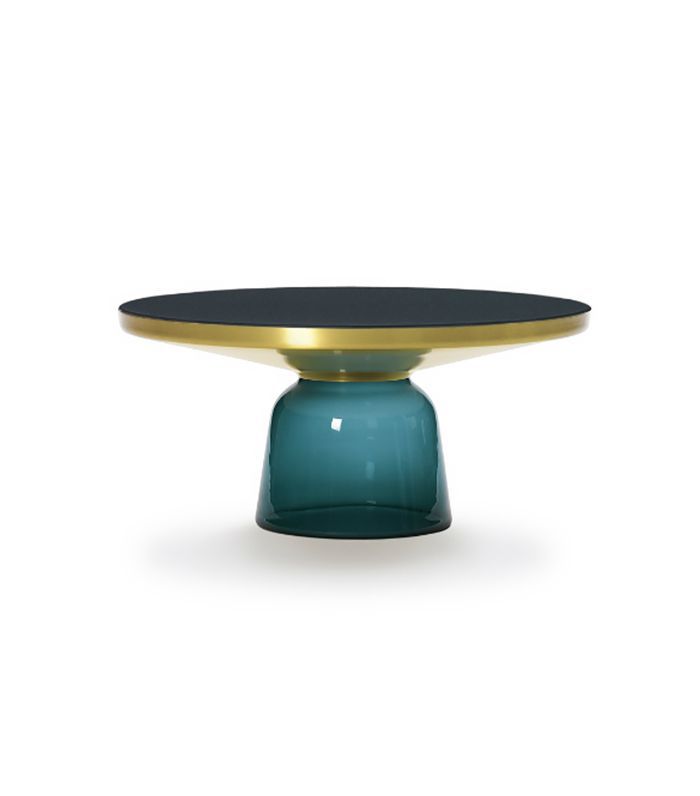 这生活room采用了一种不那么质朴,更流线型和复杂的方式来处理拱形天花板——保持所有的东西都是光滑的和白色的,在五金件上只有一点黑色以箭头的形状向下指向。在空间的中心,设计师展示了一个来自Classicon的彩色吹制玻璃咖啡桌。