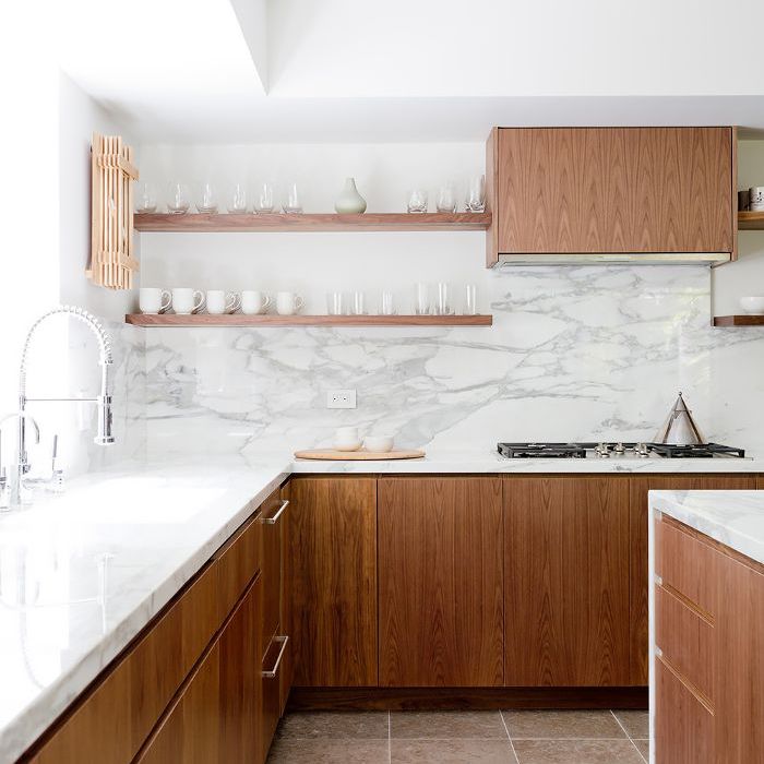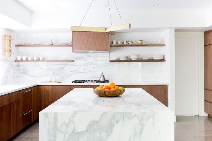 大理石台面,开放的货架,定制橱柜核桃,长椅座位,和一个巨大的大理石岛需要我们多说吗?有厨房羡慕,然后有重大的厨房羡慕。而就我们而言,从洛杉矶的最新项目洛杉矶为基础单板设计绝对属于后一类。事实上,唯一的事情更令人叫绝比最终的设计是在看到打击之前和之后的转变。