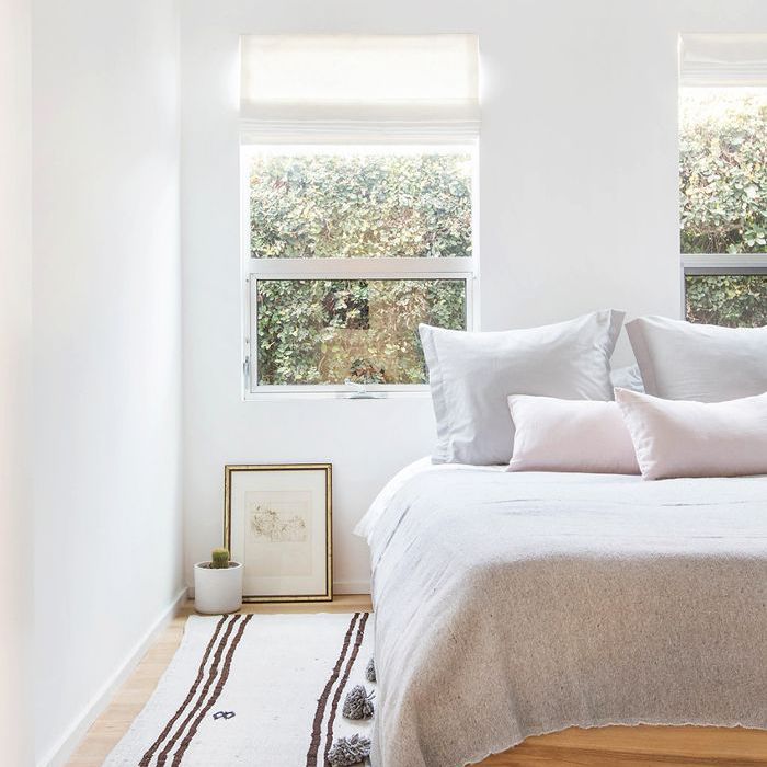 就连卧室有加州氛围与丰富的自然光,古董地毯和白色床单的。梦想成真。