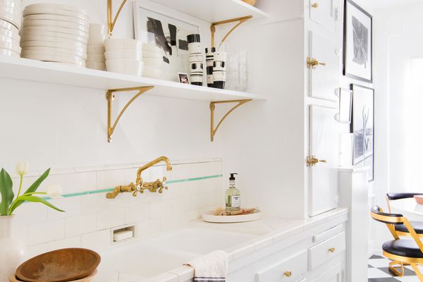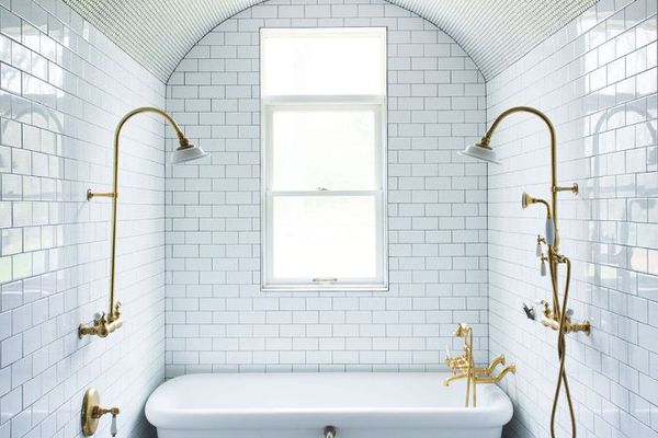 对于地铁瓷砖的死忠粉丝,看起来没有比这再步入式淋浴间的灵感。由琳恩·福特设计,这间浴室是一个清晰的另一项个案研究,全白色的调色板,室内设计师的色调的选择。闪闪发光的金色硬件和固定装置将这个中性空间提升到了一个新的高度。
