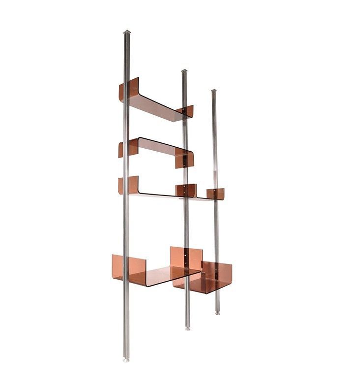 这个20世纪70年代的古董橱柜和房间分隔物由铝和有机玻璃组成,增加了一种梦幻的、开放的凉爽的建筑空间。