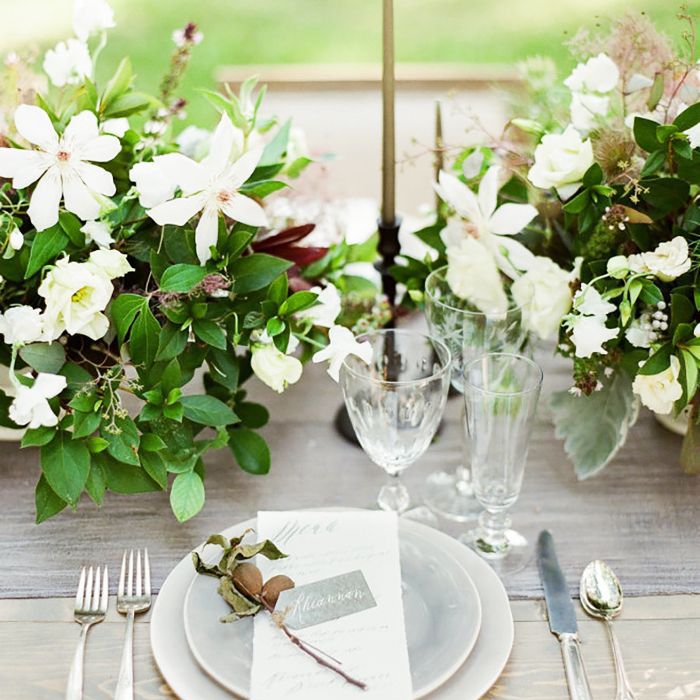艾尔:你真的可以去在几个不同的方向与婚礼核心,仍然创造一个非常永恒的一个。高大的圆柱形花瓶充满了简洁,现代,但空灵花也许是最传统的方法。像这样的安排应该保持令人难以置信的简单,透明或金属花瓶,只有一到两个类型的花香中。或者,一个高大的、全绿色的婚礼中心装饰品在它的现代化中是令人难以置信的引人注目的,但在它的方法中是永恒的。第二个方向低而松。允许一点花园的灵感不完美,以激发每个核心。最后,一个美丽的绿色花环搭在桌子上永远是美丽的。