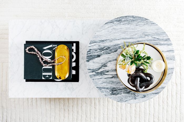 我得到了很多人对这款耐用、时尚的咖啡桌的好评。双色大理石是如此的奢华,独特的形状锚定了整个房间。